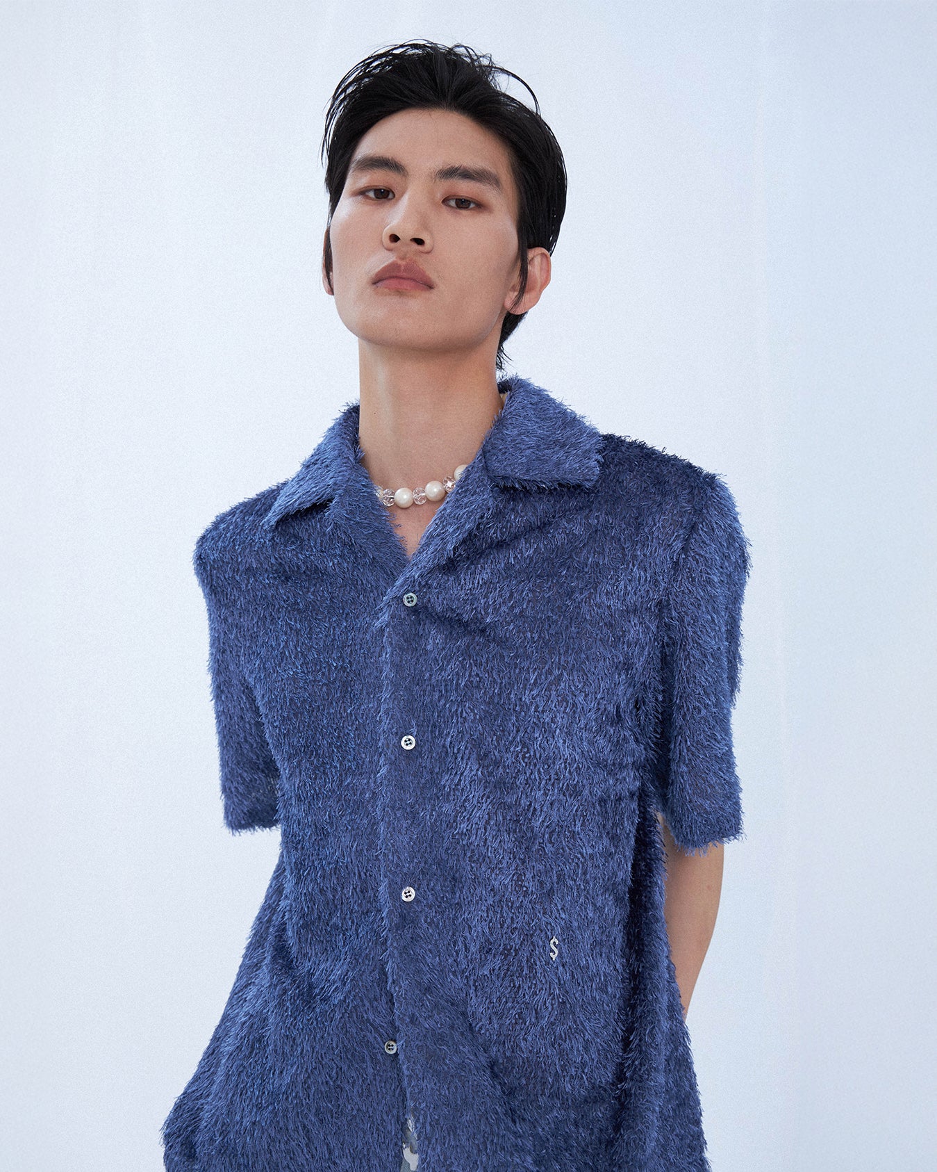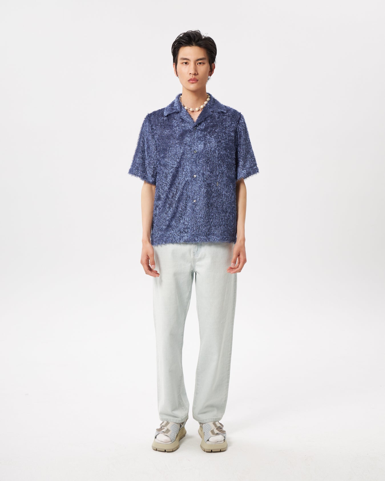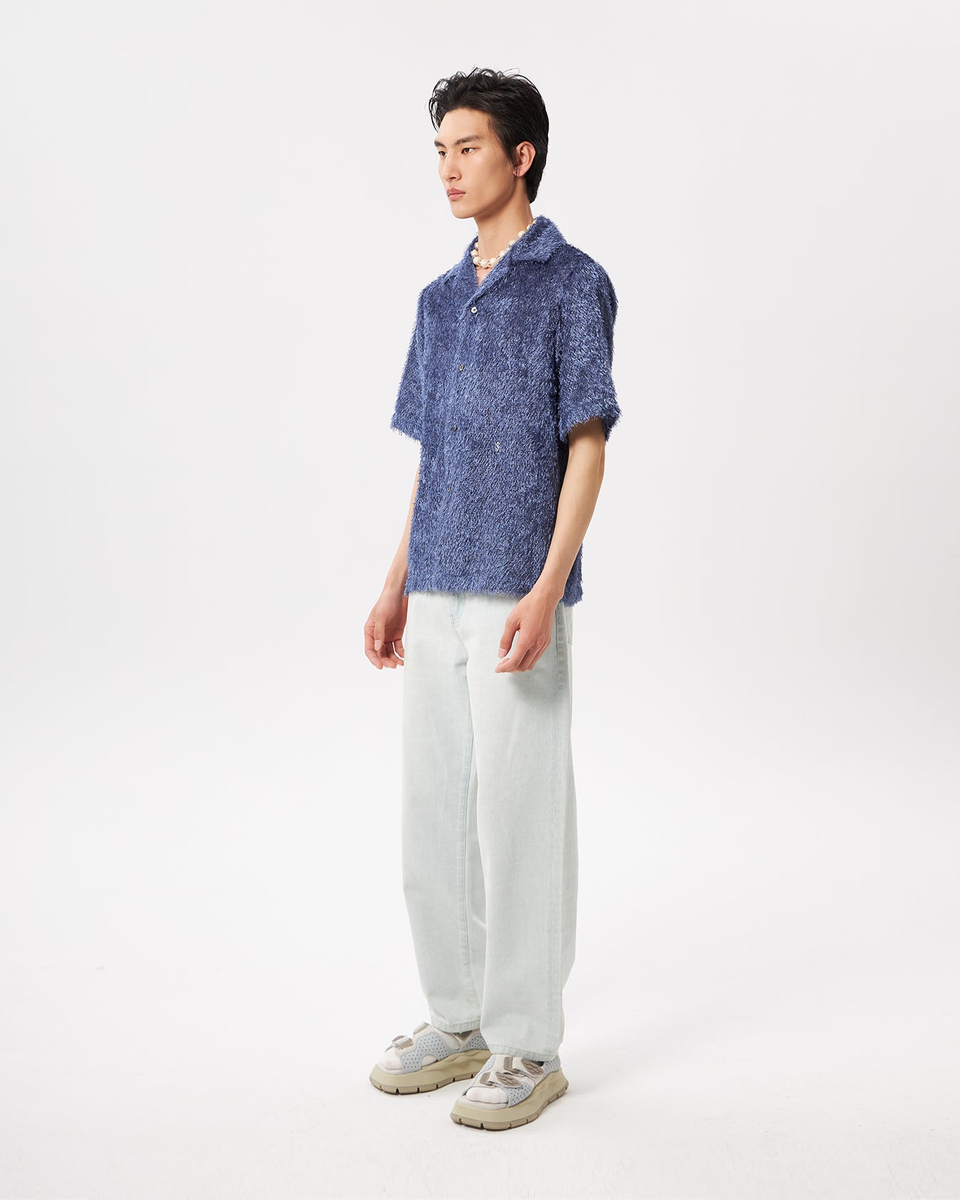 Cuban Collar Short-sleeve Shirt Midnight Blue
